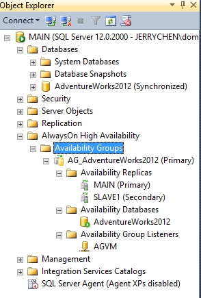 成功把MAIN和SLAVE1加入可用性组