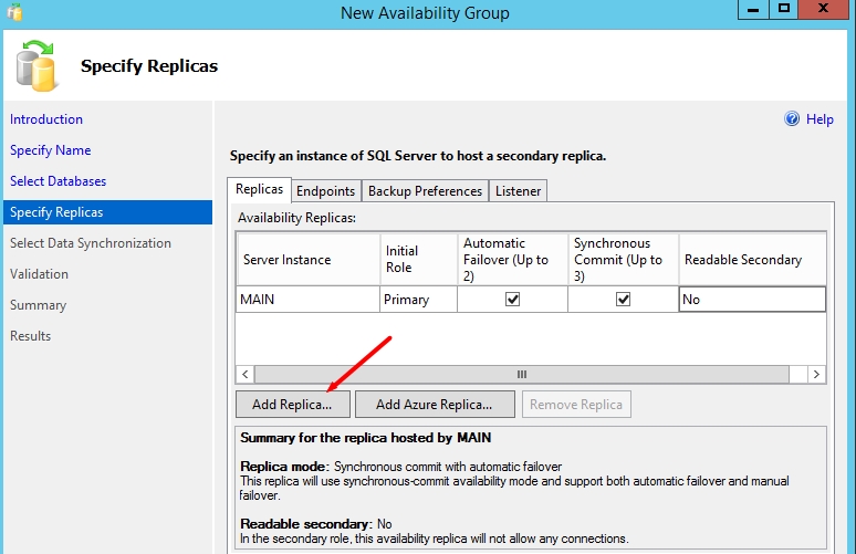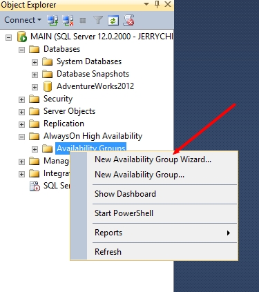 Use the Availability Group Wizard (SQL Server Management Studio)