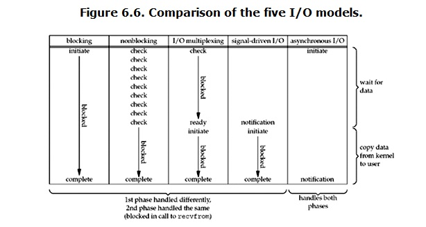 Third Edition: The Sockets Networking ", 6.2节"I/O Models ",Stevens在这节中详细说明了各种IO的特点和区别.