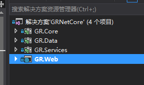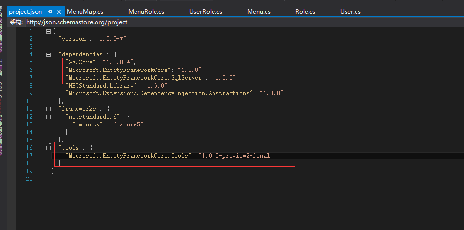 2.3.1 在GR.Data的project.json文件中添加GR.Core项目引用,以及entityframecore的相关引用
