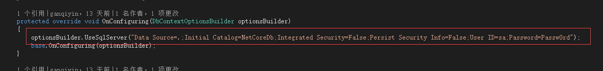 optionsbuilder.UserSqlServer:这个是创建数据库连接函数,这个可以在web项目中的startup类中就行配置。