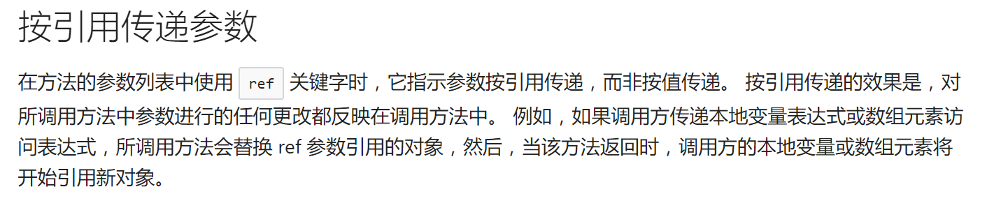 因为默认情况下,我们方法传递变量默认是是"值传递"的方式。这是什么意思呢?说到这里要先解释下引用类型和值类型,可以看我的一篇博客----->传送门。我这里简单说下。引用类型的值存的是指向对象本身或者值的地址,值类型的变量存的是对象的本身或者是值。一个经典的比喻,值类型就是报纸,引用类型就是网页。我看报纸就要买一份报纸。我得到的就是实际的报纸,但是我浏览网页只要输入一个Url地址。Url指向了实际网站内容。