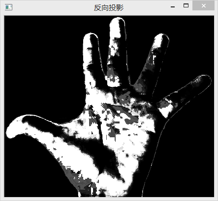 b、加载另一幅包含手的图像,利用函数cvClacBackProject找到肤色区域