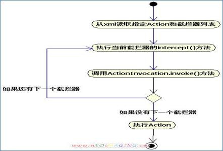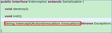 b) 所有的截拦器必须实现intercept方法,而该方法的参数恰恰又是ActionInvocation,所以如果在intercept方法中调用invocation.invoke(),则会继续从Action的Intercepor列表中找到下一个截拦器执行,依此递归调用Intercepor;