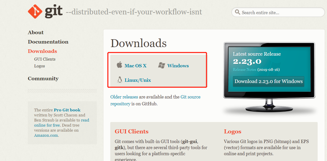 进入官网,针对自己的操作系统选择下载 https://git-scm.com/downloads