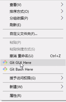 点击鼠标右键,即可看到git的图形界面和命令行两个菜单。