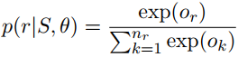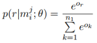 把池化层得到的g输入到softmax层,计算属于每种关系的概率值。论文中使用了Dropout正则化,把池化层的输出g以r的概率随机丢弃,得到的softmax层的输出为: