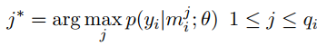 第一步,对于每个实体对,会有很多包含该实体对的句子(qi个),每个句子经过softmax层都可以得到一个概率分布,进而得到预测的关系标签和概率值。为了消除错误标注样本的影响,从这些句子中仅挑出一个概率值最大的句子和它的预测结果,作为这个实体对的预测结果,用于计算交叉熵损失。比如上面的例子中,挑出了第二个句子。公式为: