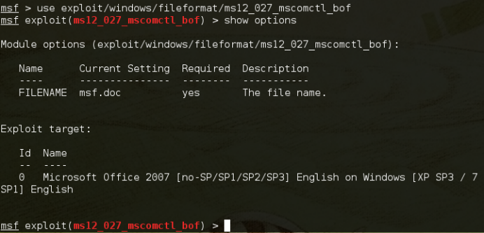 use exploit/windows/fileformat/ms12_027_mscomctl_bof