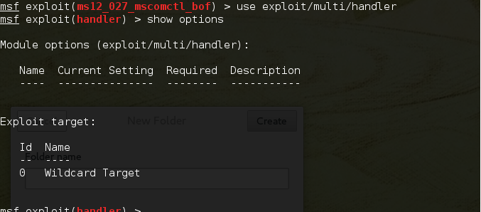2、使用漏洞利用模块ms12_027_mscomctl_bof