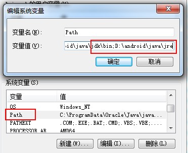 然后就是修改path,将jdk/bin放进去和jre放进去然后用;号进行隔开。。