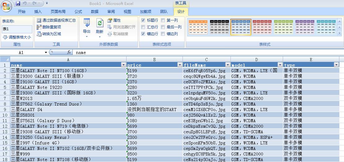 7.运行完成后查看抓取的数据信息和手机图片如下(把Xml文件拖到Excel中显示):