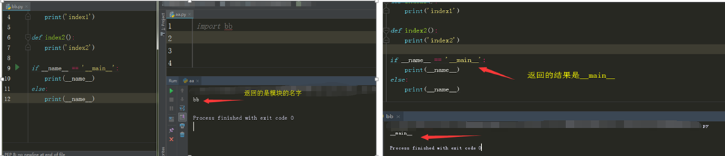 2. 当文件被当作模块文件导入的时候,print(__name__)打印的结果 是模块名字,没有后缀名