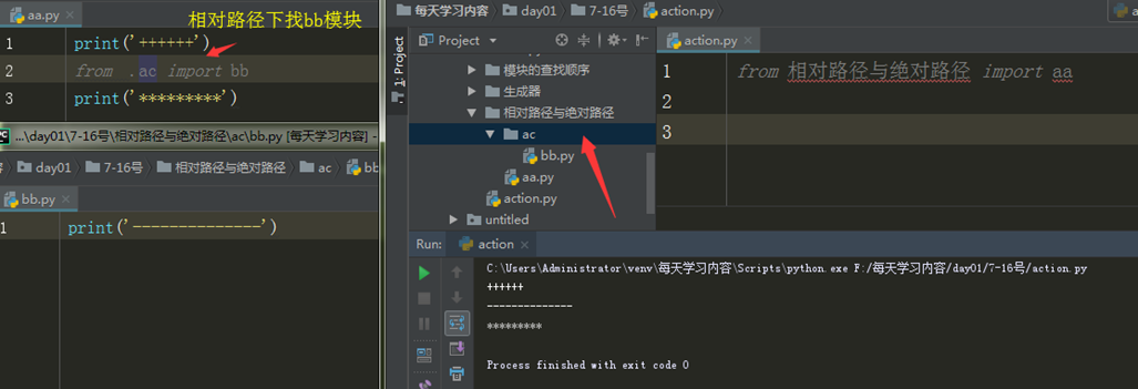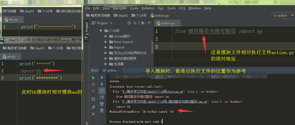 **绝对导入必须依据执行文件所在的文件夹路径为准