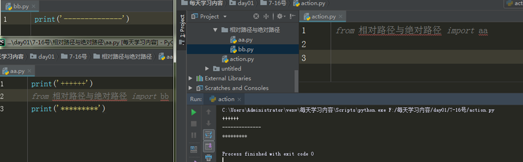 2.在执行文件里面 import bb.py文件(导入 bb.py文件模块)