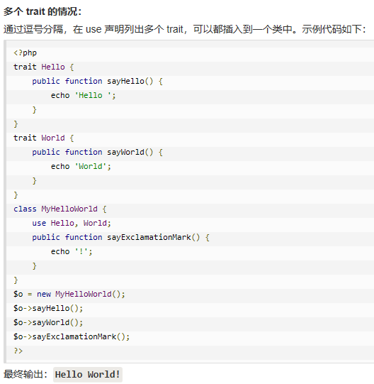__CLASS__ 对 trait 也起作用。当用在 trait 方法中时,__CLASS__ 是调用 trait 方法的类的名字。