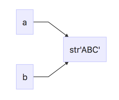 执行b = a,解释器创建了变量 b,并把b指向 a 指向的字符串'ABC':