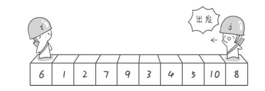 - 右游标: 它一开始指向待分割数组最右侧的数组元素。在排序过程中,它将向左移动