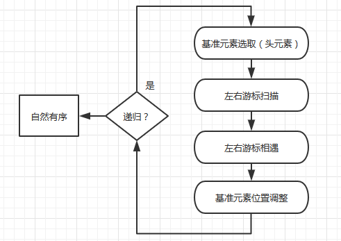 划分的过程有三个关键点:“基准元素”, “左游标” 和“右游标”。
