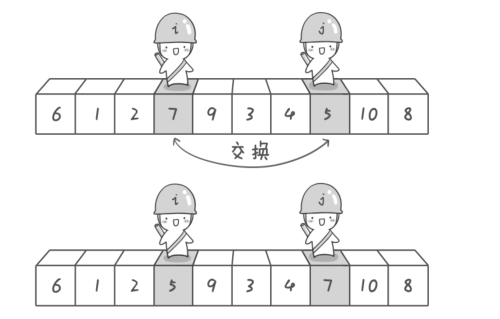 - 游标i,j的移动的过程中发生了什么事情(比如元素交换)?,