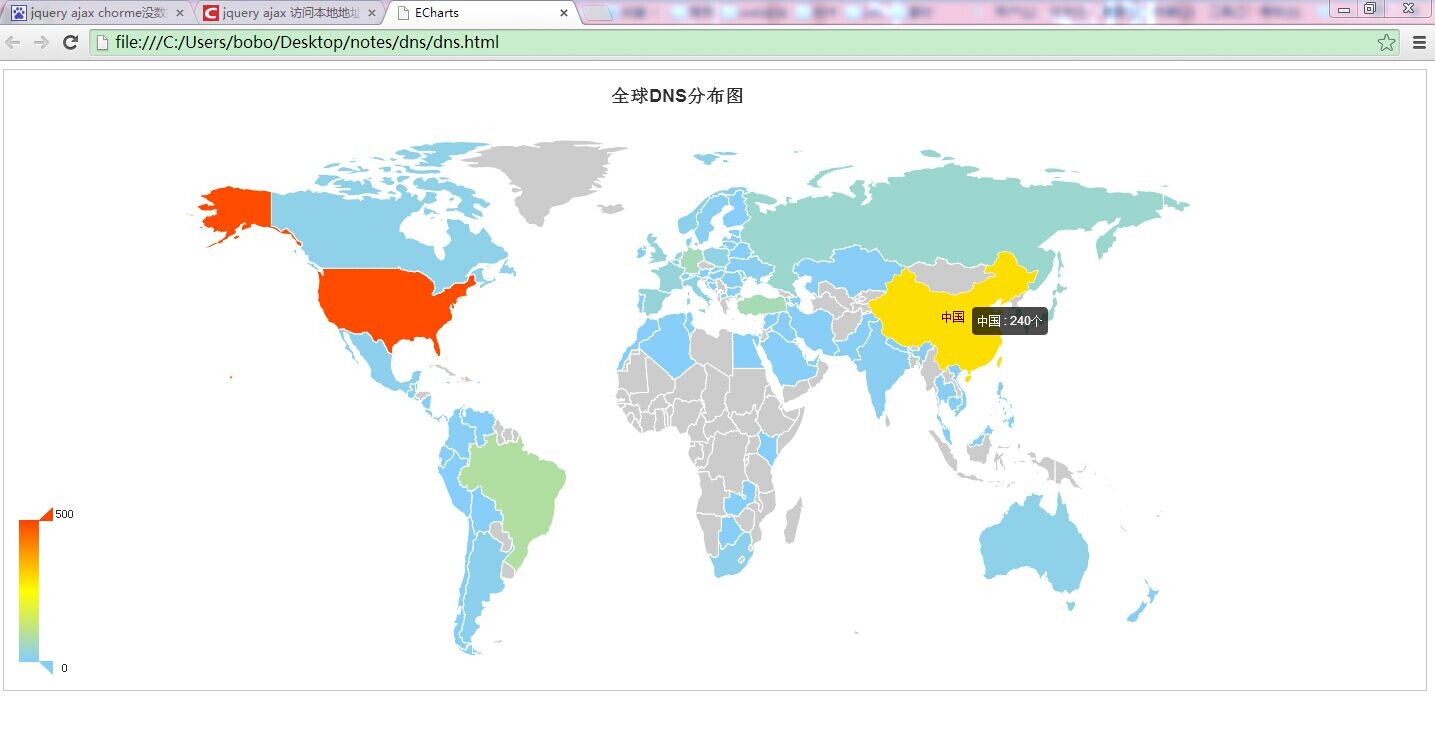 本文介绍了如何利用Echarts和Nodejs解析DNS服务器IP地址的物理位置,并将其显示在全球地图上。包括使用Echarts进行地图展示、通过Nodejs解析IP地址的地理位置以及解决Ajax访问本地文件的限制等问题。