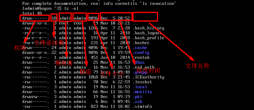 - 当为[ d ]则是目录,例如上表文件名为“.config”的那一行