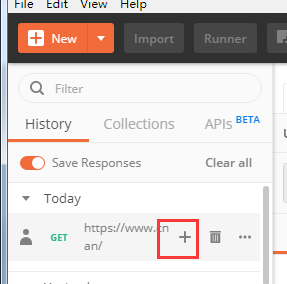 我们在第一篇的时候就简单的介绍了postman的页面功能。保存入口在页面左侧中