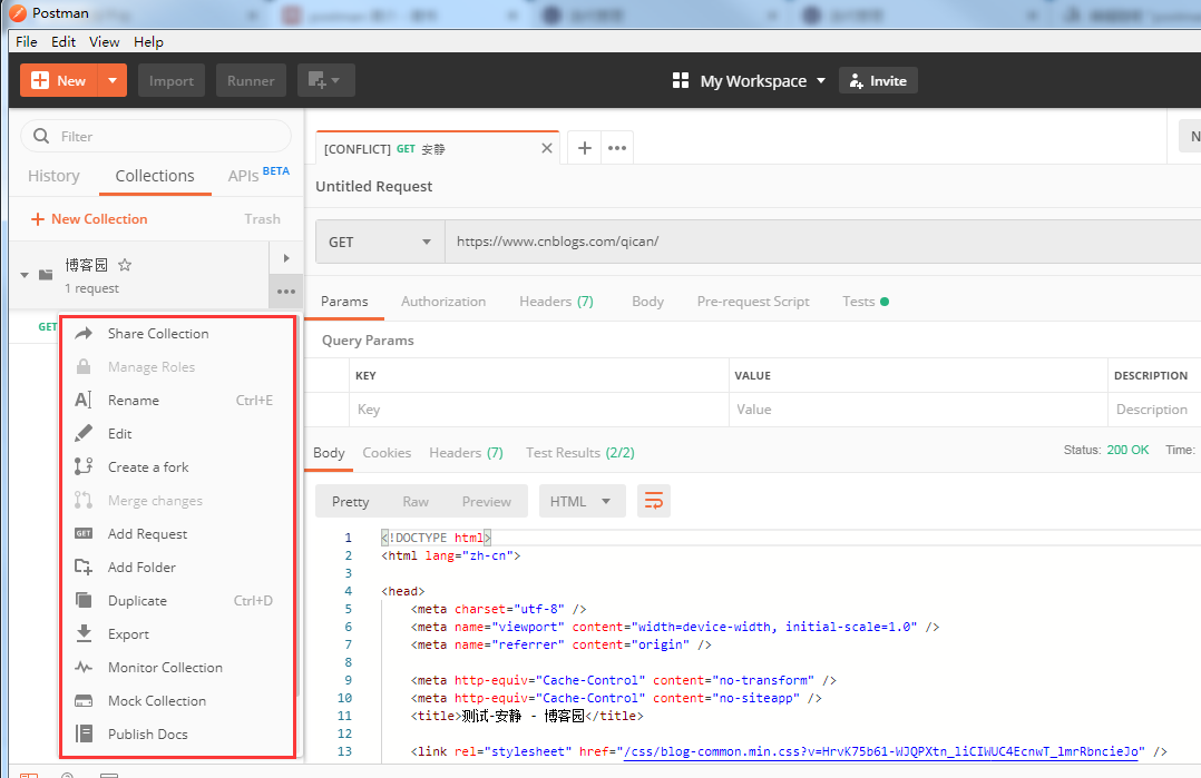 上面介绍了如何创建文件夹,我们需要把同一类的接口放到文件夹中,以get请求博客园的为例