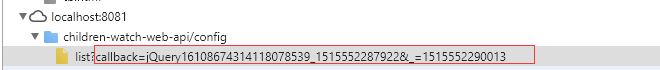 $.ajax({ // url:"http://localhost:8081/rest/itemcat/list?callback=getMessage", url:"http://localhost:8081/children-watch-web-api/config/list", type:"get", cache:false, dataType:"jsonp", //jsonp:"callback", //这里定义了callback的参数名称,以便服务获取callback的函数名即getMessage //jsonpCallback:"getMessage", //这里定义了jsonp的回调函数 //如果不加回掉函数方法,jquery会自动加上 success:function(data){ // var dataList = eval(data.list); var html = ""; for(var i = 0;i < dataList.length; i++){ html += dataList[i].deviceId+"<br>"; } $("#myDiv").html(html); }, error:function(){ alert("发生异常"); } });
