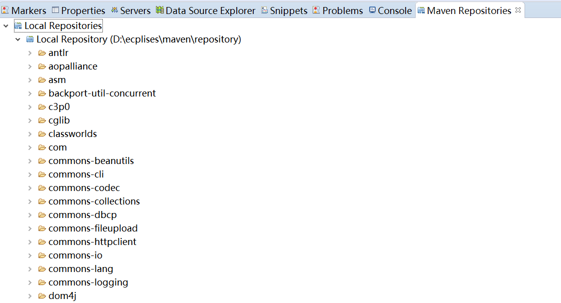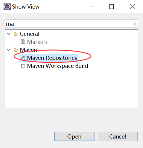ecplise--->window--->show view--->other--->maven repository-->点击open。