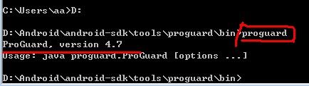 cd <your SDK path>\android-sdk\tools\proguard\bin