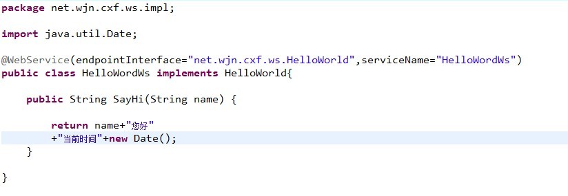 (2) 开发一个Web Service实现类。这个实现类也需要用WebService修饰。