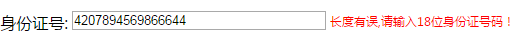 3 $('warn2').innerHTML = '<span>请输入二代身份证号码!</span>';