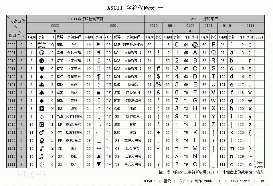 这128个符号,只占用了一个字节的后面7位,最前面的1位统一规定为0。