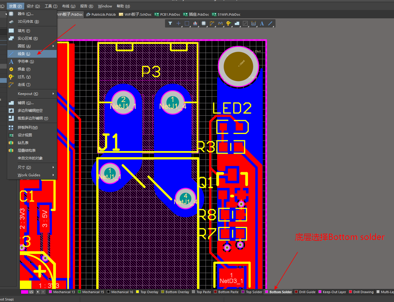 假设感觉需要走大电流,那么就需要开窗(这样的话就可以镀一层锡在上面,能承受的电流自然更多)