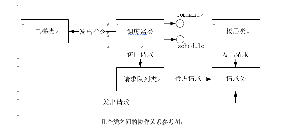 从最直接的角度分析就是请求与调度的关系,直接点就是,发出请求,然后处理请求,将所有合法请求过程构成请求队列,调度器处理一个请求就是根据当前电梯状态发出一条指令,然后电梯运行该条指令,然后更新电梯的状态,然后返回状态只调度器,直到执行完最后一条指令。所以按照思想构造出五个类,但这次作业,在下并没有完全按照要求写,虽然是五个类,但是五个类的作用并不是完全按给出的建议。首先说一下几个类的功能: