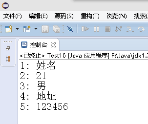 1 String str2="姓名~21~男~地址~123456"; 2 3 String[] a=str2.split("~"); 4 5 int i=1; 6 7 for(String t:a) 8 { 9 System.out.println(i+": "+t); 10 11 i++; 12 }