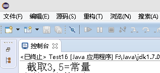 1 String str="字符串常量字符串常量"; 2 System.out.println(" 截取3,5="+str.substring(3,5));