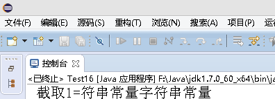 1 String str="字符串常量字符串常量"; 2 System.out.println(" 截取1="+str.substring(1));