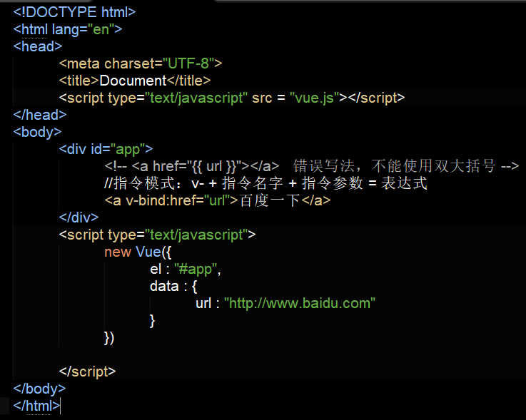 Vue指令语法,绑定标签属性