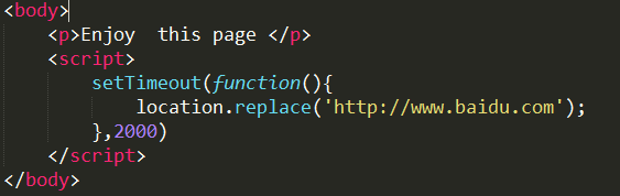 如果将这个页面加载到浏览器中,浏览器会在2s后重新定向到百度首页。然后,‘后退’按钮将处于禁用状态,如果不输入万致的URL,那么无法返回示例页面;