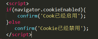 cookieEnabled---判断浏览器是否启用cookie,cookie是客户端本地持久保存用户私密信息的小文件。