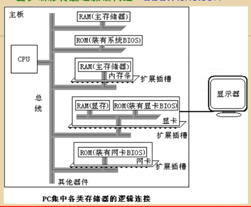 PC机中各类存储器的逻辑连接情况