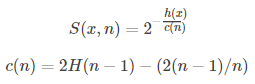 E(h(x))表示记录x在每棵树的高度均值,另外h(x)计算需要改进,在生成叶节点时,算法记录了叶节点包含的记录数量,这时候要用这个数量Size估计一下平均高度,h(x)的计算方法如下: