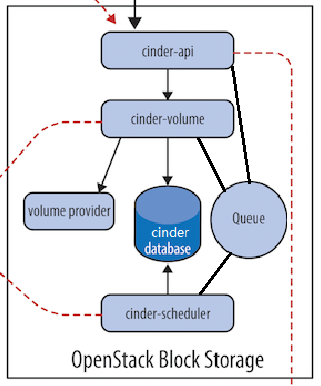 Cinder各个子服务通过消息队列实现进程间的通信和相互协作。因为有了消息队列,子服务之间实现了解耦,这种松散的结构也是分布式系统的重要特征。