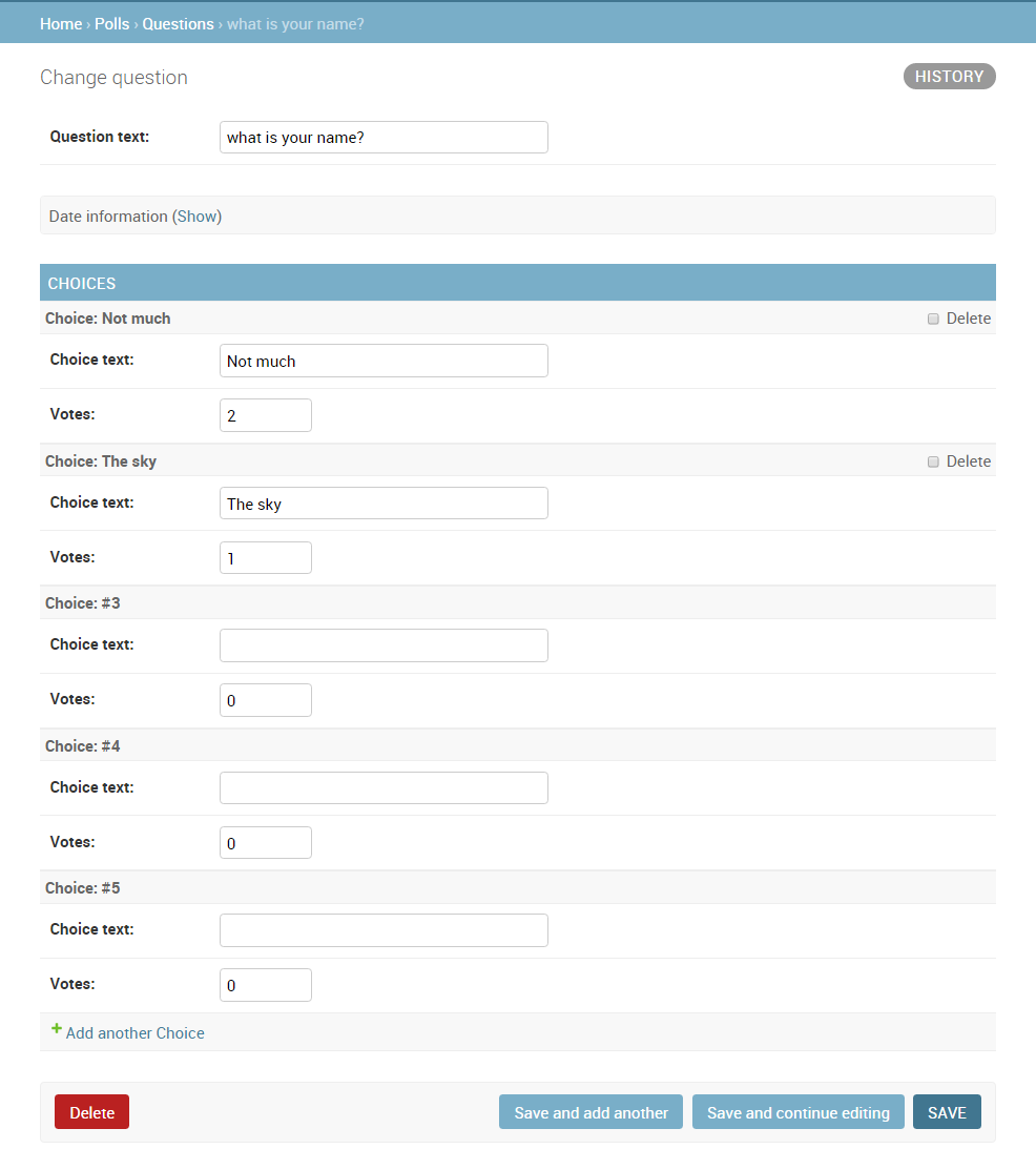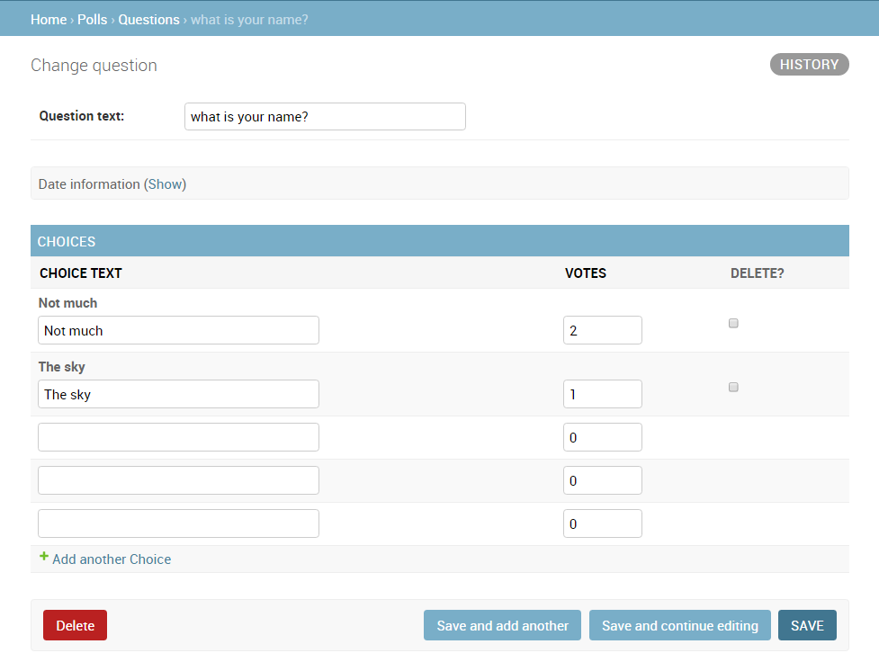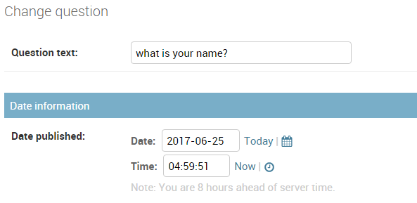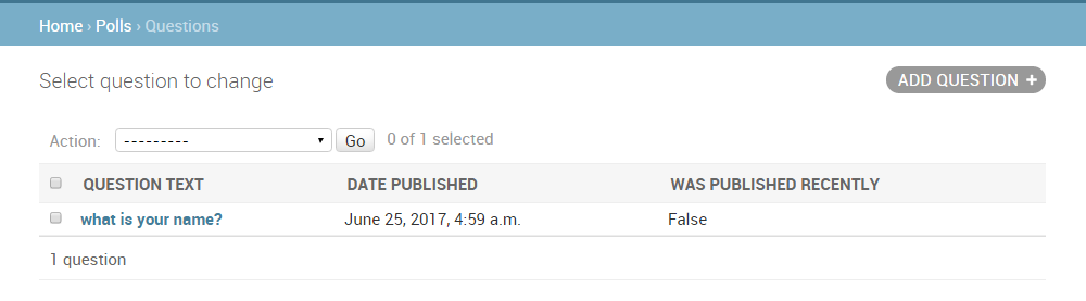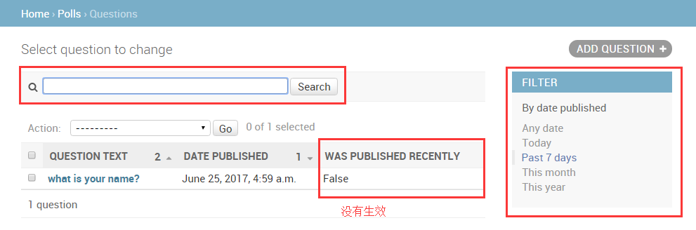 另外还可以添加一个时间过滤器, 一个搜索框到QuestionAdmin