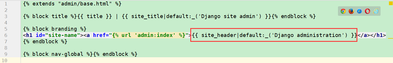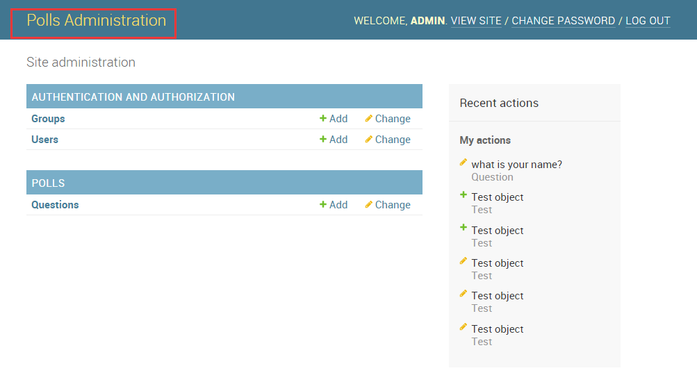 <h1 id="site-name"><a href="{% url 'admin:index' %}">Polls Administration</a></h1>