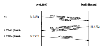 (2)服务器发回包含服务器的初始序号的SYN报文段作为应答。同时,将确认序号设置为客户的ISN加1以对客户的SYN报文段进行确认。一个SYN将占用一个序号。