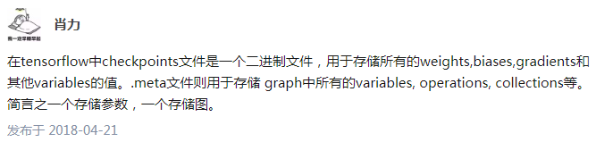 ZC:应该是 TensorFlow模型的保存与恢复加载 相关的东西:TensorFlow模型的保存与恢复加载 - 简书.html(https://www.jianshu.com/p/7ebee4d10e49)