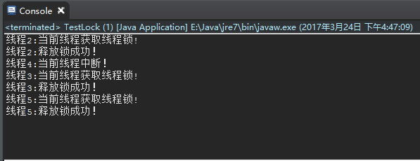 System.out.println(Thread.currentThread().getName() + ":当前线程获取线程锁!");